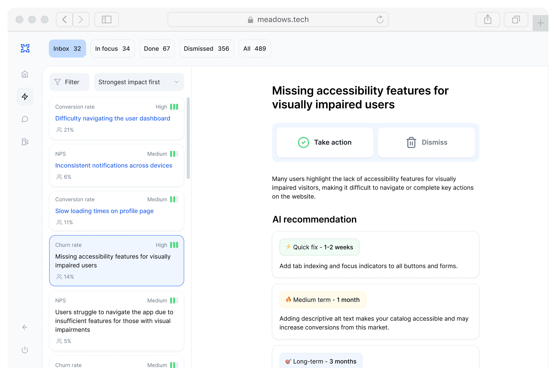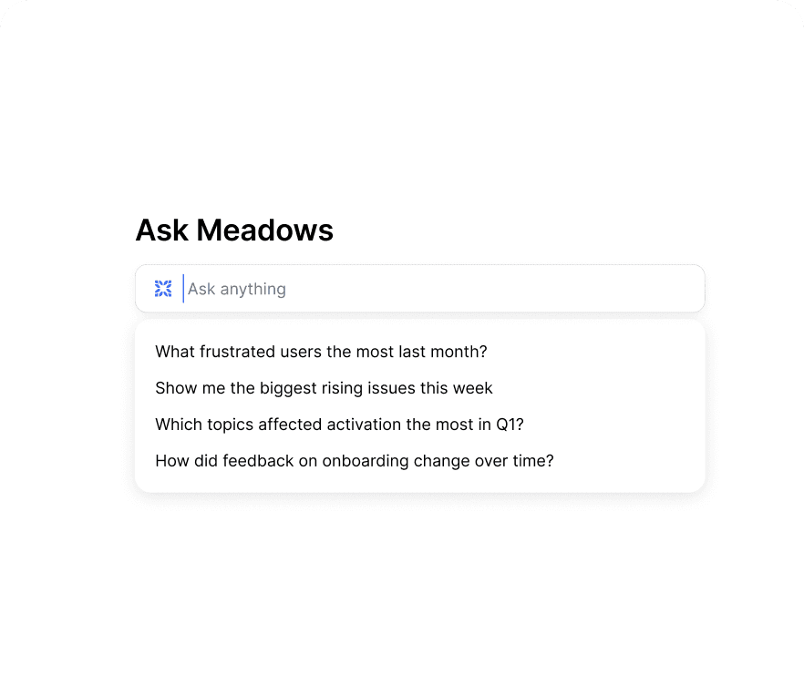 Meadows makes all your feedback searchable through natural language, delivering fast, precise insights whenever you need them.