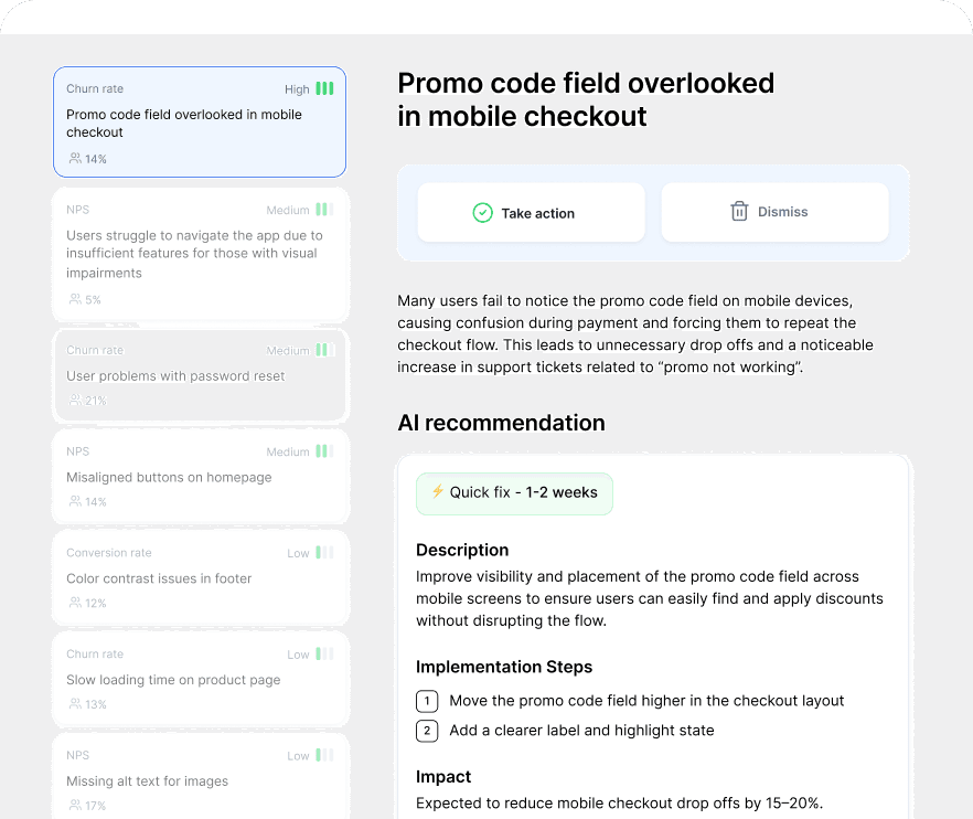 We distil everything your customers say into clear priorities with practical next steps, so your team can move from understanding the problem to solving it with certainty.